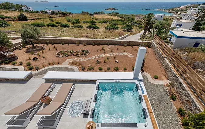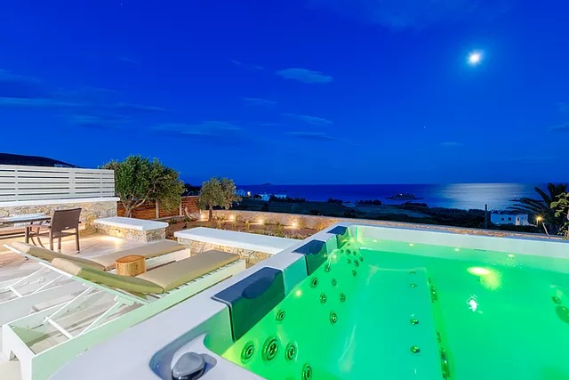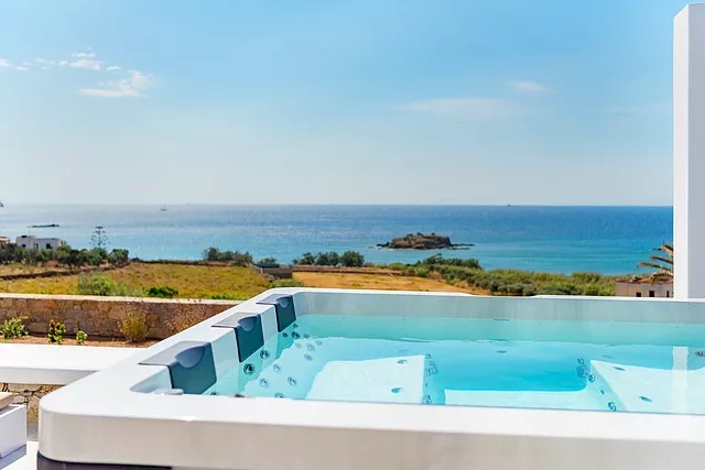 Η μαγική θέα του Αιγαίου πελάγους σε συνδυασμό με το τζακούζι και τις λειτουργίες υδρομασάζ που διαθέτει, θα κορυφώσουν την εμπειρία διαμονής σας.