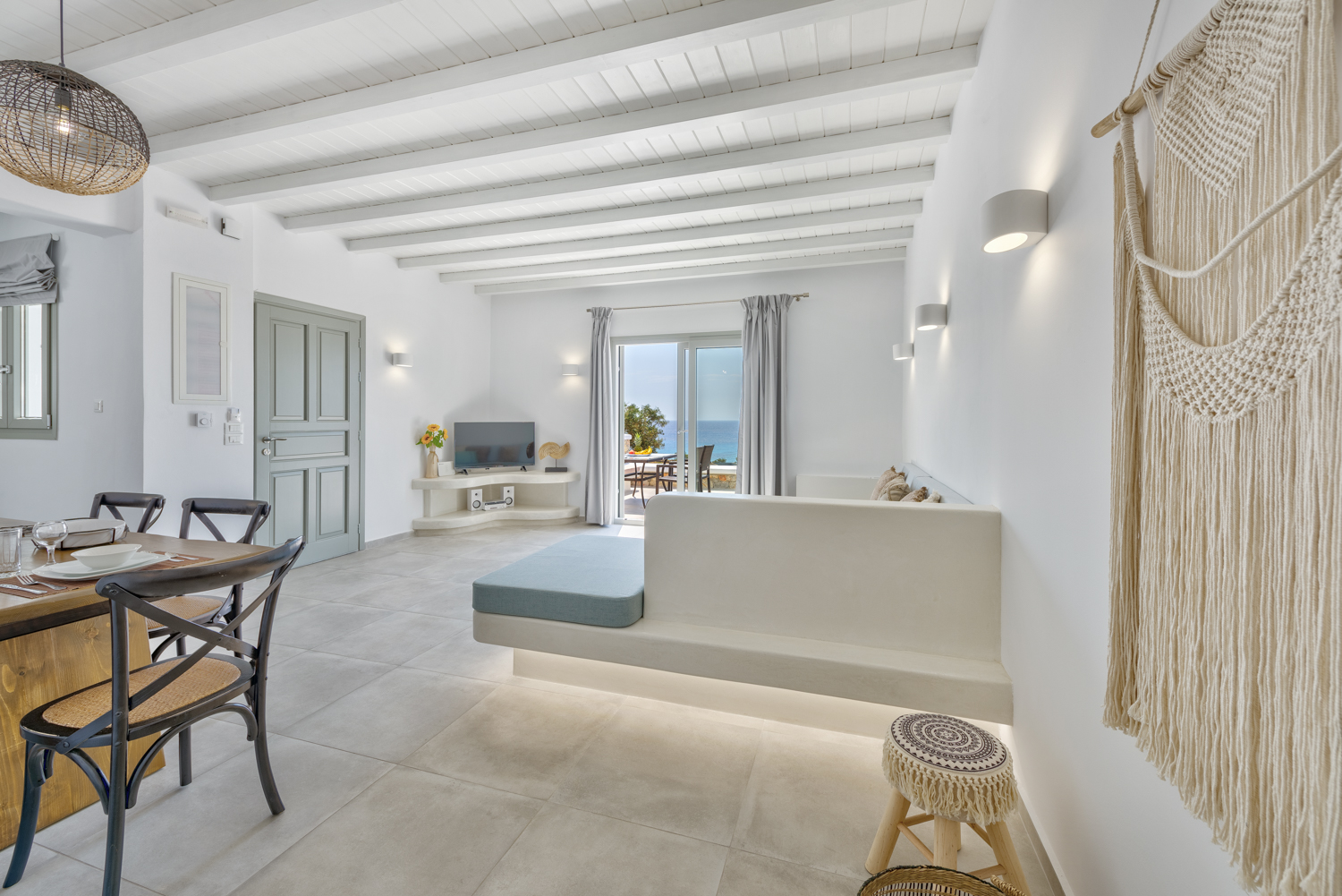 Aelion Sea provides a living room specifically designed to maximize your relaxation experience. A smart TV and a sound system will let you enjoy your favourite shows or your favourite music.